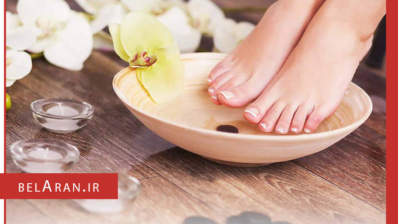 یک ظرف مناسب را به اندازه ی کافی از آب گرم و کمی نمک دریا پُر کنید و پاها را تقریباً تا مچ درون آن قرار داده و کمی ماساژ دهید تا خستگی پاها خارج شده و آرامش پیدا کنند .