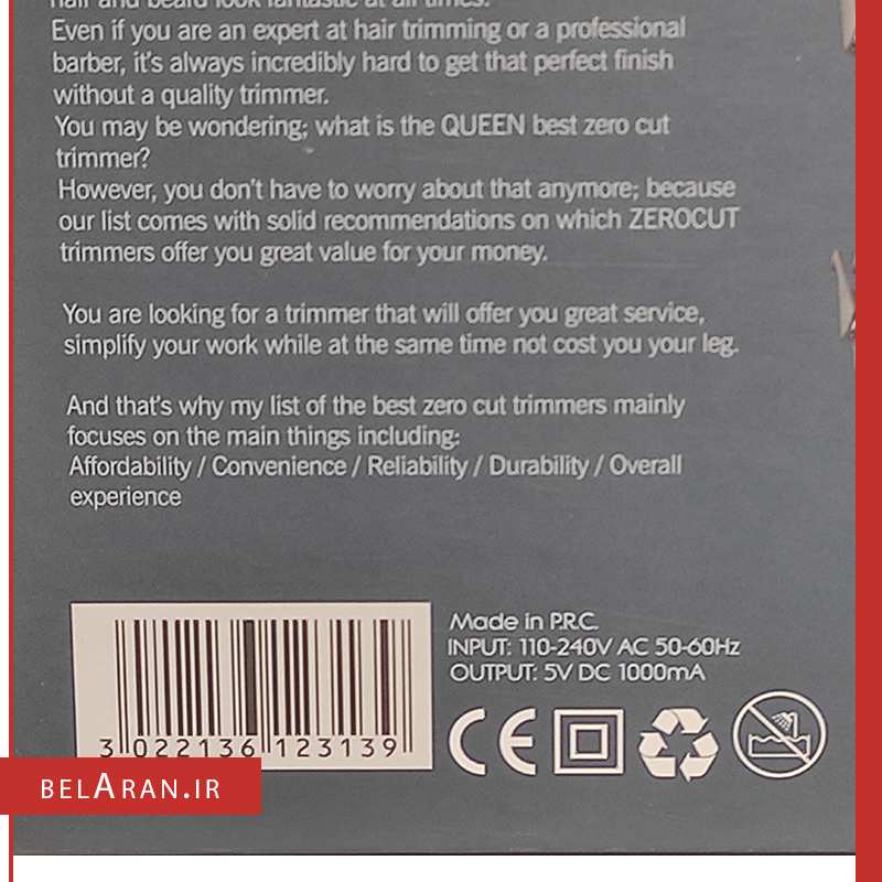 ✅ماشین اصلاح تریمر شارژی Zero Cut کوئین مدل HC008d یک دستگاه مناسب برای آن دسته از آقایانی است که نیاز به دقت بالا در اصلاح دارند. اندازه کوچک تیغه این دستگاه باعث میشود تا برای خط انداختن روی موهای سر و صورت بسیار مناسب باشد. تیغه ضد زنگ این ماشین اصلاح تقریبا میتوانند اصلاح نزدیک به صفر را به شما بدهند و اگر نیاز به افزایش طول اصلاح داشته باشید با استفاده از 4 شانه با طول های 1.5 و 3 و 6 و 9 میلیمتر میتوانید طول اصلاح را افزایش دهید.ماشین اصلاح hc008d دارای صفحه نمایشگر دیجیتال است که به شما میزان شارژ باقیمانده دستگاه به همراه سرعت تیغه دستگاه را نشان میدهد. همچنین با استفاده از دو دکمه که در بالا و پایین دکمه خاموش / روشن هستند میتوانید سرعت دور موتور دستگاه را در 3 درجه کم یا زیاد کنید.زمان لازم برای شارژ شارژ ماشین اصلاح ۱۸۰ دقیقه است که به شما ۱۲۰ دقیقه کار را ارائه میدهد و اگر برای اولین بار از این دستگاه استفاده میکنید بهتر است آن را به مدت ۴ ساعت در شارژ قرار دهید