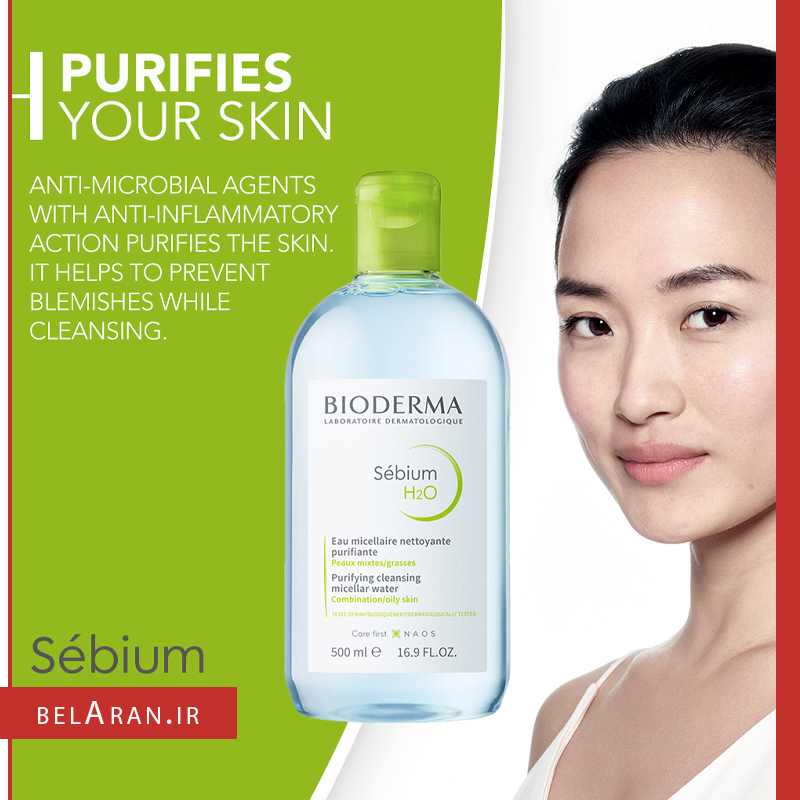مدل : میسلار واتر پوست چرب و مستعد آکنه Bioderma Sebium H2O Purifying Micellar Cleansing Water and Makeup Removing Solution for Combination to Oily Skin
