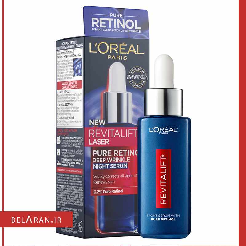 مدل : سرم شب ضدچروک لورال رویتالیفت لیزر رتینول LOreal Revitalift Laser Pure Retinol Deep Anti-Wrinkle Night Serum